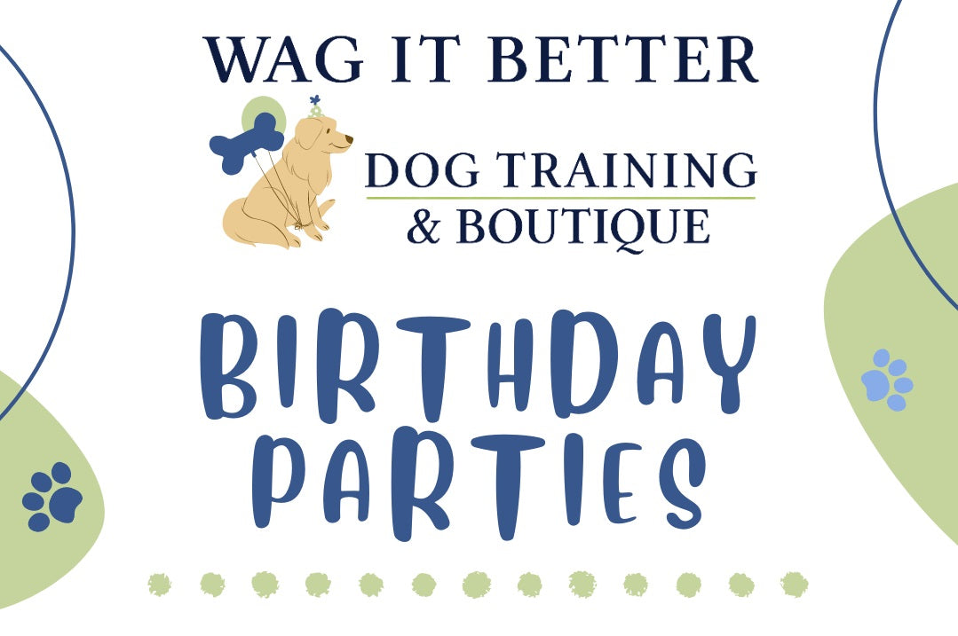 Celebrate your dog's birthday at Wag It Better Boutique. Party is for birthday dog plus 5 pup friends (more can be added for additional cost). We provide cake, cupcakes or cookies, toys, birthday favors, ballons, tablecloths, and plates. You may bring your own food (dog & people) and decorations.